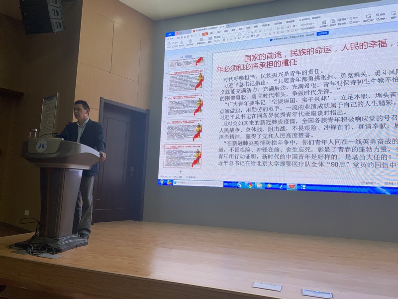 章兵首先强调,党的十八大以来,习近平总书记自2013年5月4日同各界优秀青年代表开展座谈会开始,每年都会在“五四”青年节来临之际和高校师生代表进行座谈,提出希望和要求,寄语新时代新青年,使得学员们深刻认识到了习近平总书记对广大青年“不负青春韶华,勇担民族复兴重任”的殷切寄托。随后章兵为学员们讲解了习近平总书记为什么每年都要对广大青年工作者发表重要讲话:国家的希望在青年,民族的未来在青年,青年是整个社会力量中最积极、最有生机的力量。国家的前途、民族的命运、人民的幸福,是当代中国青年必须和必将承担的重任。青年理想伟大,信念坚定,是一个国家、民族无坚不摧的前进动力。青年要把正确的道德认知、自觉的道德养成、积极的道德实践紧密结合起来,自觉树立和践行社会主义核心价值观,并在学习中增长知识,锤炼品格,在工作中增长才干、练就本领,以真才实学服务人民,以创新创造贡献国家。