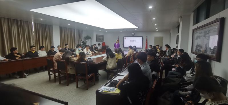 2022年5月11日下午,经济与管理学院全体研究生在辅导员赵恒梅的带领下,在C座818会议室学习贯彻中共中央政治局常务委员会5月5日会议精神。
