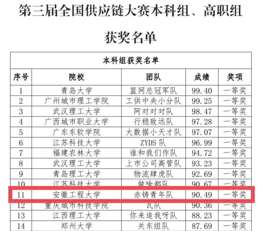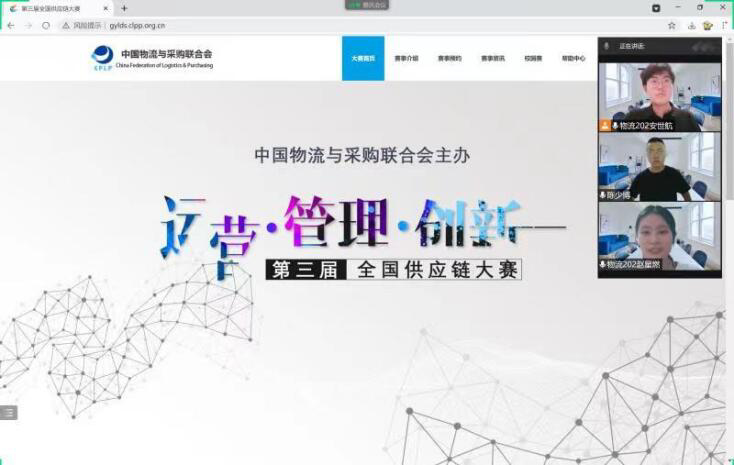 近日,由中国物流与采购联合会主办,厦门易木科技有限公司技术支持的第三届全国供应链大赛落下帷幕。受疫情影响,本次全国总决赛通过线上进行,经过线上四小时的激烈角逐,由经济与管理学院程永宏、张孝琪老师指导的赤铸青年队(参赛学生:盛冰艳、章笑尘、周玉芳、吕晨)和啥都队(参赛学生:张弛、梁晓芹、刘旭、冀飞)分别荣获全国一等奖和二等奖的好成绩,是我校近三年参赛以来取得的最好成绩。