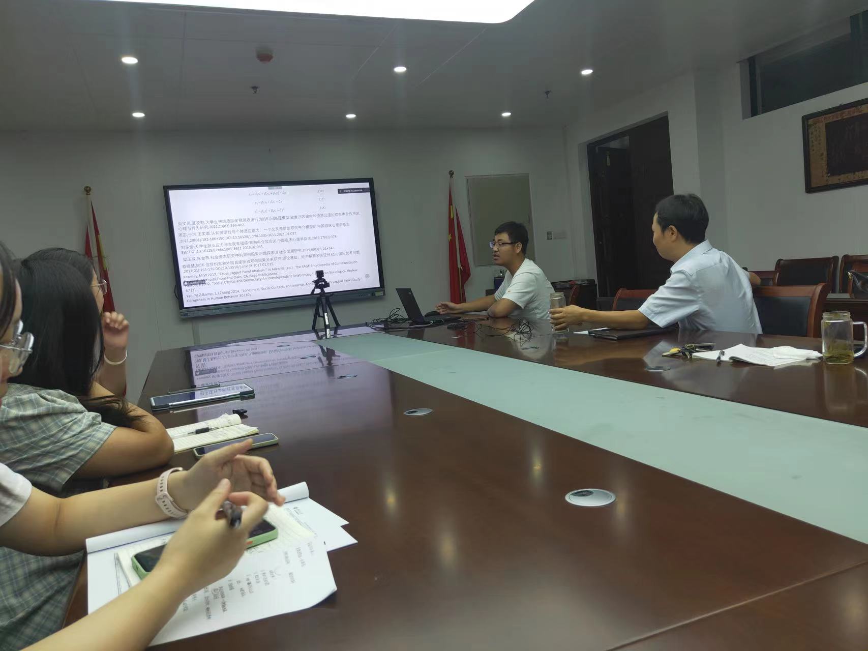 报告会下半场是论文分享与指导环节,丁如曦为经济与管理学院的研究生进行论文指导。郭孟、张杰、施东三位研究生分别汇报了自己的研究成果。丁如曦首先肯定了我院研究生培养质量,称赞同学们的论文话题新颖,并就同学们分享论文的内容给出具体修改建议。指导过程中,丁如曦还围绕学术论文的影响力、质量要求,具体撰写方法以及投稿的注意事项等方面进行内容分享。