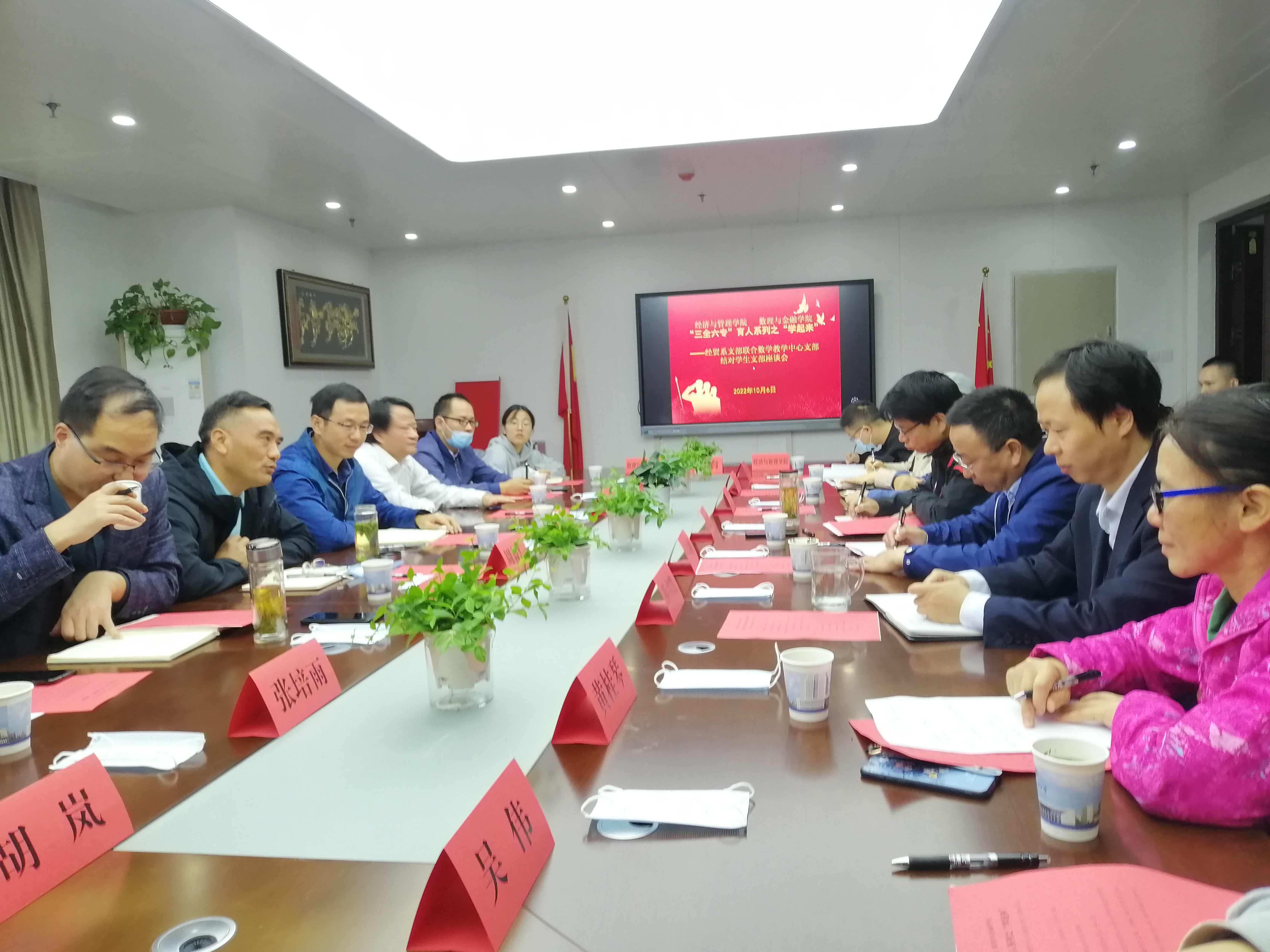 与会师生围绕抓党建促发展,“三全六专”育人系列之“学”起来进行交流发言。大家对数学基础课在人才培养中的重要性达成了统一的认识,对如何做好师生支部共建工作畅谈了想法思路和建议。建议修订完善专业培养方案,加强数学基础课教学,提出以“提升考研学生数学成绩”、“跨学科助力学科竞赛”为抓手,坚持问题导向,以学生为中心,充分发挥两学院在党建和学科优势以及专业学科交叉融合的特点,跨学院搭建沟通交流平台,切实解决学生在“学”起来过程中遇到的困难和问题,助力学生成长成才。
