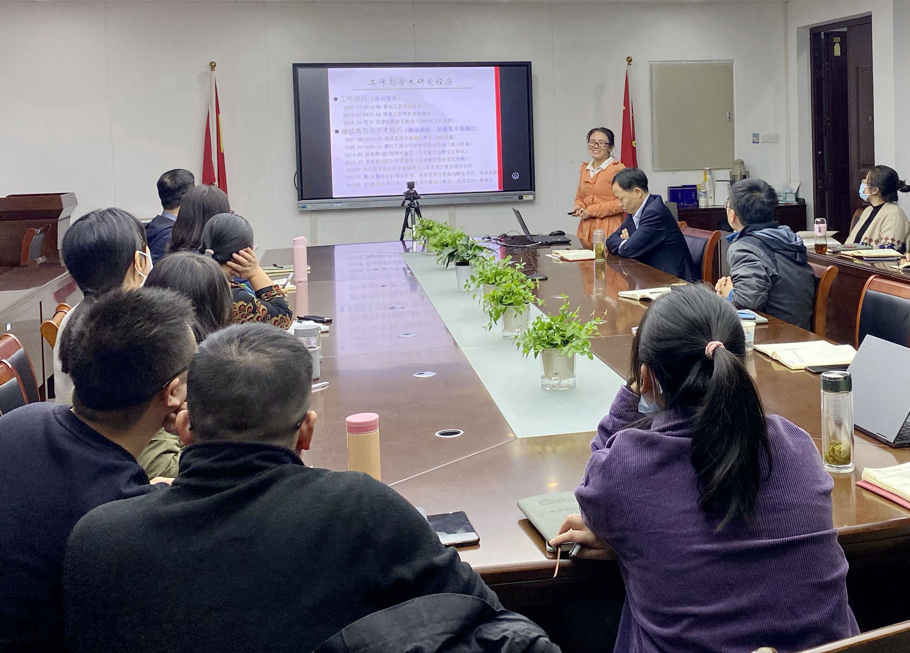 黄桂琴、张孝琪两位2022国家基金获分享了基金申报的心得体会和经验。黄老师从静心、专心、虚心三个方面分享了自己撰写和修改申报书的心路历程;张孝琪老师从深思考、多查阅、勤请教和再坚持四个方面分享了自身申报基金的经历和感悟。