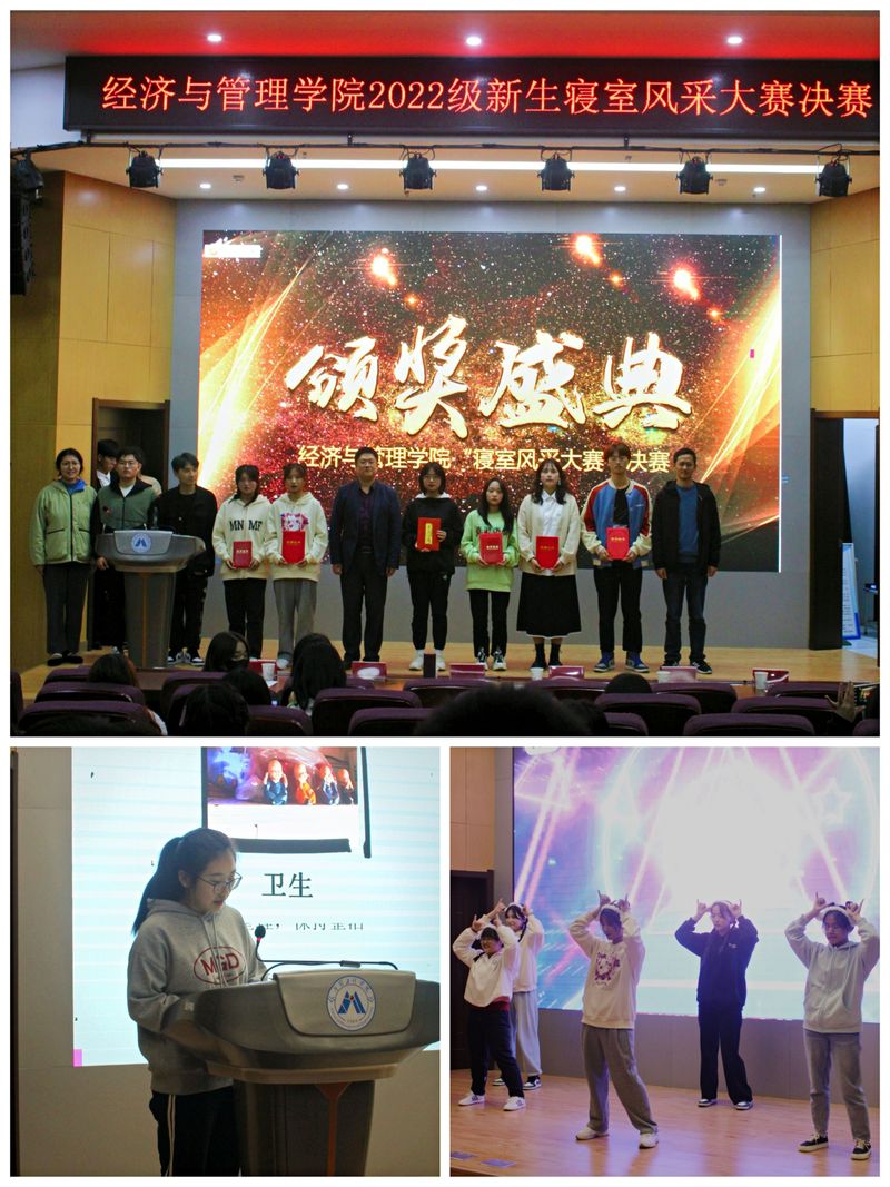为落实和谐社区建设理念,营造良好的寝室文化氛围,进一步发挥优秀朋辈引领示范作用,彰显寝室凝聚力与团结力,增强集体主义意识,筑牢归属感,不断让大学生“和”起来,经济与管理学院“舒青春朝气,展历史画卷”寝室风采展示大赛决赛于11月12日晚在C座七楼报告厅举行。学院党委副书记刘海涛、团委书记赵恒梅、辅导员吴兆克、学生代表及2022级新生代表共同参加。
