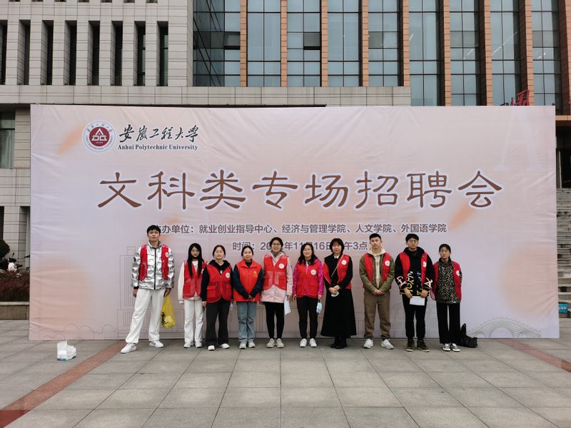 本次招聘会在校就业创业指导中心指导下,由经济与管理学院与人文学院、外国语学院联合举办。为了切实做好就业服务工作,在本学期开学后,学院积极与用人单位联系,与相关学院和部门多次交流谋划联合开展本次校园招聘活动。本次文科专场招聘会邀请组织了中铁建大桥工程局集团第二工程有限公司、奇瑞汽车股份有限公司(国际公司)、安徽海螺创业投资有限责任公司、三只松鼠股份有限公司、集瑞联合重工有限公司等26家单位参加。