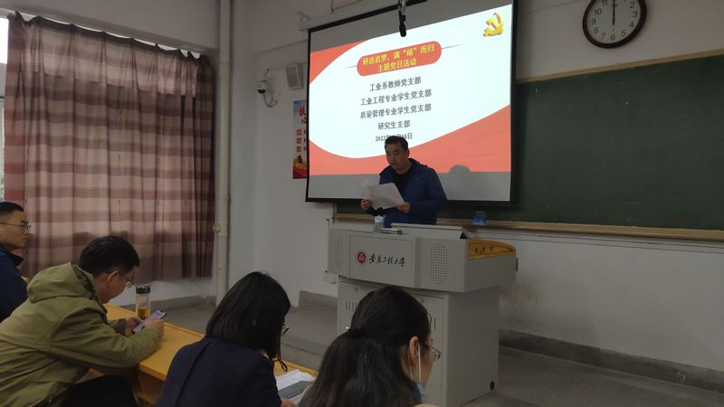2022年11月18日下午,经济与管理学院在4教204教室开展了“研途追梦,满硕而归”主题党日活动。工业工程系教师党支部青年教师、工业工程专业学生支部全体党员、质量管理专业学生支部全体党员与研究生支部部分党员参加了本次主题党日活动。活动由工业工程系教师党支部沈超主持。