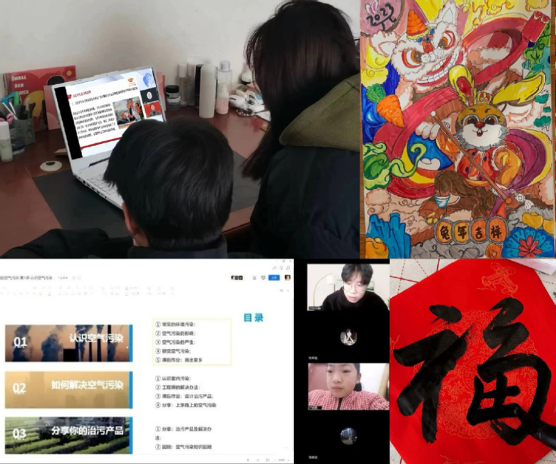 我院指导的星火义务支教社与贵州省黔南布依族苗族自治州三都水族自治县第三小学达成对接,在寒假期间通过线上对接的方式开展义务支教活动。120名青年志愿者围绕“一起快乐阅读”“一起健康运动”“一起云课堂”等板块,向106名结对儿童介绍家乡特色、讲解历史故事、共读一本书,共同开展思政、环保、美育、健康等主题的“云课堂”活动,完成了一系列“奋进新征程”美术绘画作品,累计开展支教志愿服务时长约900小时。