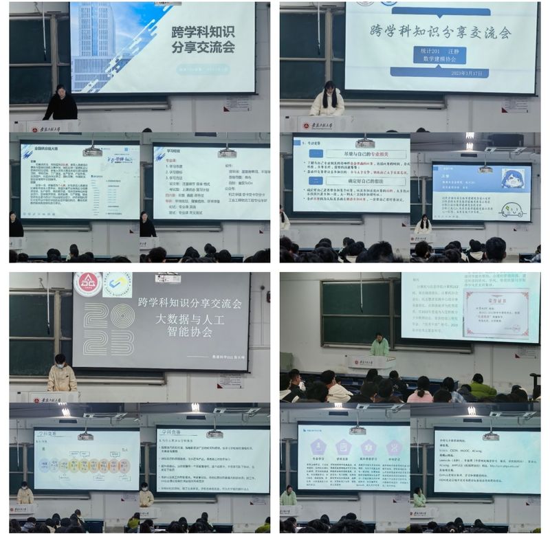 为了宣传党的二十大精神和落实学校“三全六专”育人实践工作要求,经济与管理学院于3月17日晚举办跨学科知识分享交流会。本次活动由物流协会承办,数学建模协会、大数据与人工智能协会、计算机协会共同协办。学院各年级各专业200余名同学共同参加,特邀4位来自不同专业的优秀学生代表进行竞赛知识和经验分享。让不同学科“跨”起来,让所有同学“学”起来。