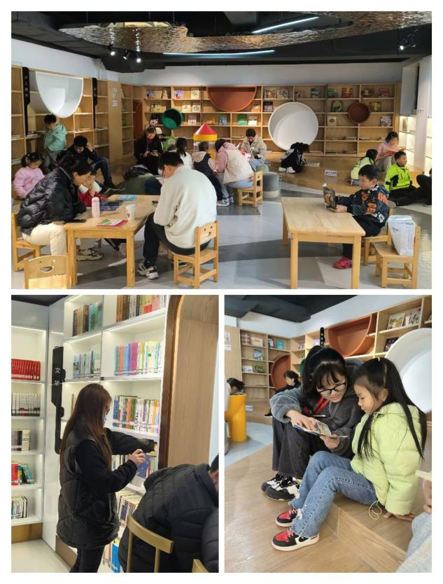 活动伊始,志愿者们负责借书区还书书目的整理和排列工作,并为读者寻找图书,维护阅览区秩序。其中排书并整理错书是一项脑力兼体力活动的工作,作为志愿者不仅要熟悉书架的位置与书目的排列规则,还要及时地发现错书并归放到正确位置。面对这些种类繁多的书目,志愿者们仍然细心做好一切,一本本图书赫然整齐摆放在书架上,方便以后的读者查找观看。这样极其挑战耐心的服务工作,不仅让她们有更多的机会接触图书,更加爱惜这些“精神食粮”,还培养了爱心、耐心和奉献意识。在图书阅览区志愿者和小朋友共读绘本,一起进入绘本的世界,在绘本的精炼语言和栩栩如生的图片中教会小朋友们认识基础植物、动物和人物,从而提升小朋友们的想象力、认知能力和语言能力。并向小朋友们讲解小故事,使得小朋友们在快乐的氛围中思考,学到人生哲理,激发阅读兴趣。讲解绘本活动结束后,志愿者们再次整理书籍,将小朋友及家长随手放置的图书分门别类,摆放整齐。