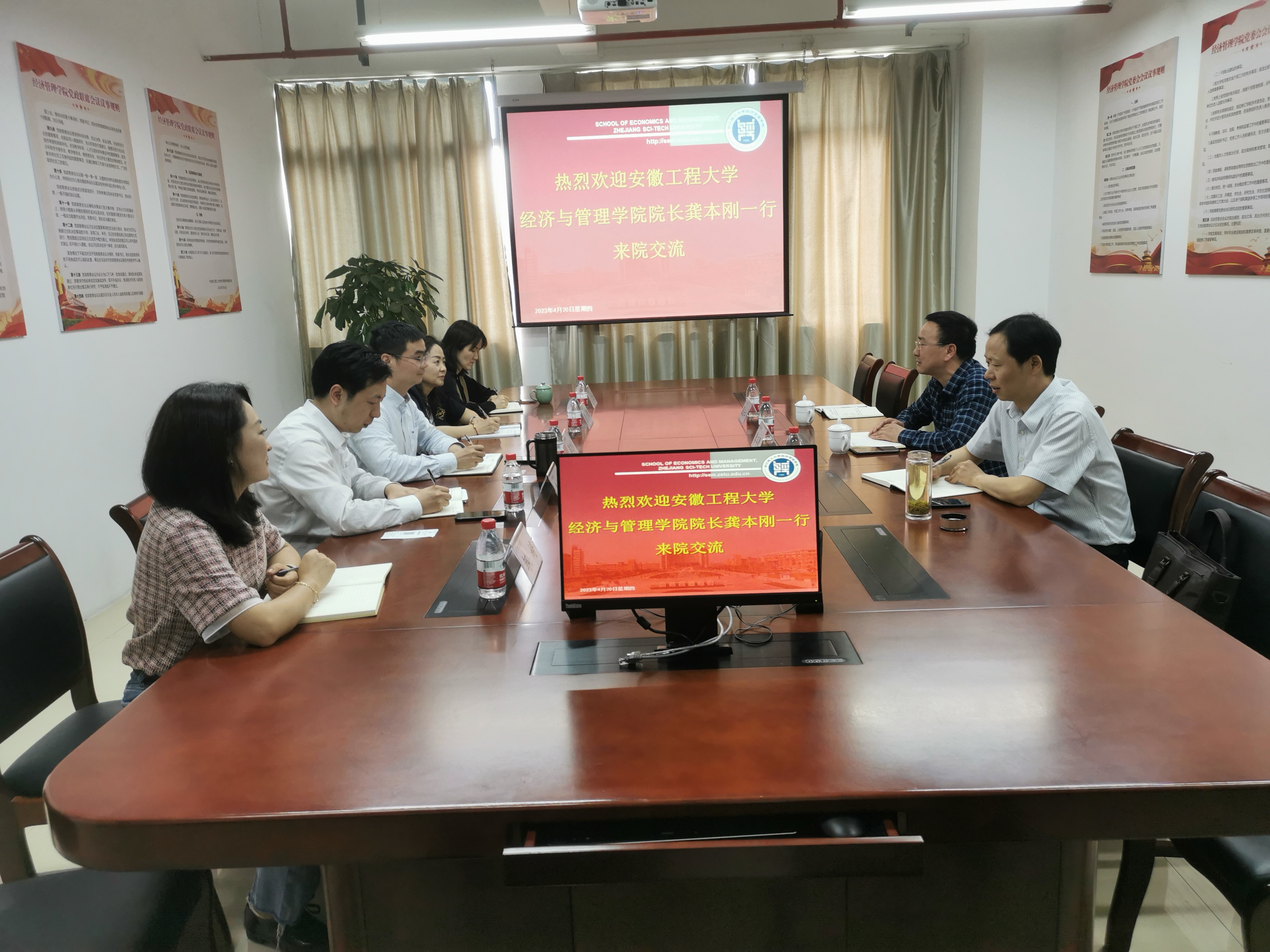 4月20日下午,学院院长龚本刚、副院长蔡书凯、校MBA教育中心主任张云丰一行赴浙江理工大学经济管理学院调研交流,浙江理工大学经济管理学院院长潘旭伟、副院长黄海蓉、副院长奉小斌、办公室主任章占云、MBA教育中心主任邹婷等热情接待了我院调研团队。