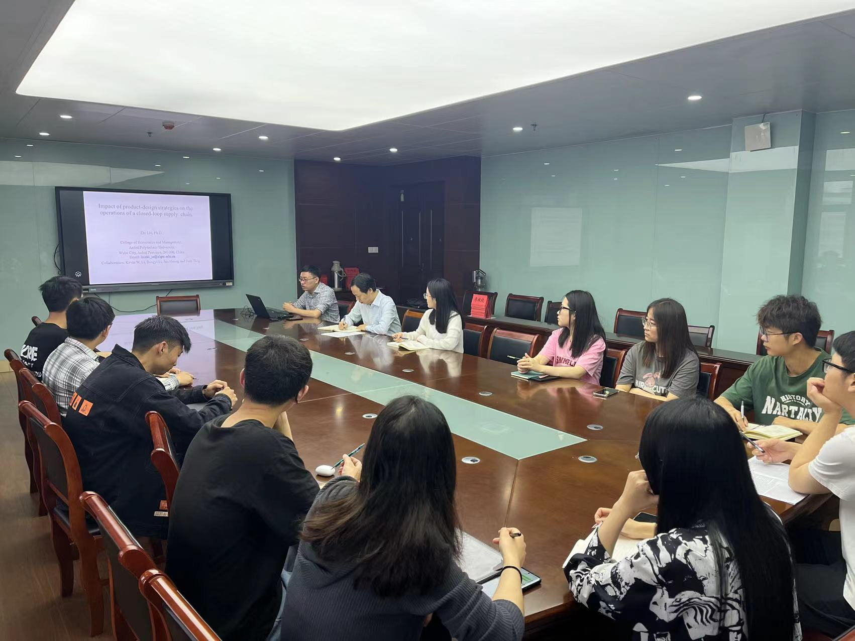 刘志副教授以《产品可持续性设计策略对闭环供应链运作的影响》为题,分析了再制造产品对新产品需求的影响,并以联想电脑为案例揭示了零部件设计策略最终产品的设计、生产和再制造的影响;然后,通过模型的建立与求解展示了制造商的最优再制造策略、产品可再制造性设计策略与闭环供应链的再制造策略、经济经济效益和环境绩效之间的联系,并提出再制造并不总是对闭环供应链成员或环境有利;最后,刘志向大家讲述了这篇文章的撰写背景以及撰写过程中的难点。
