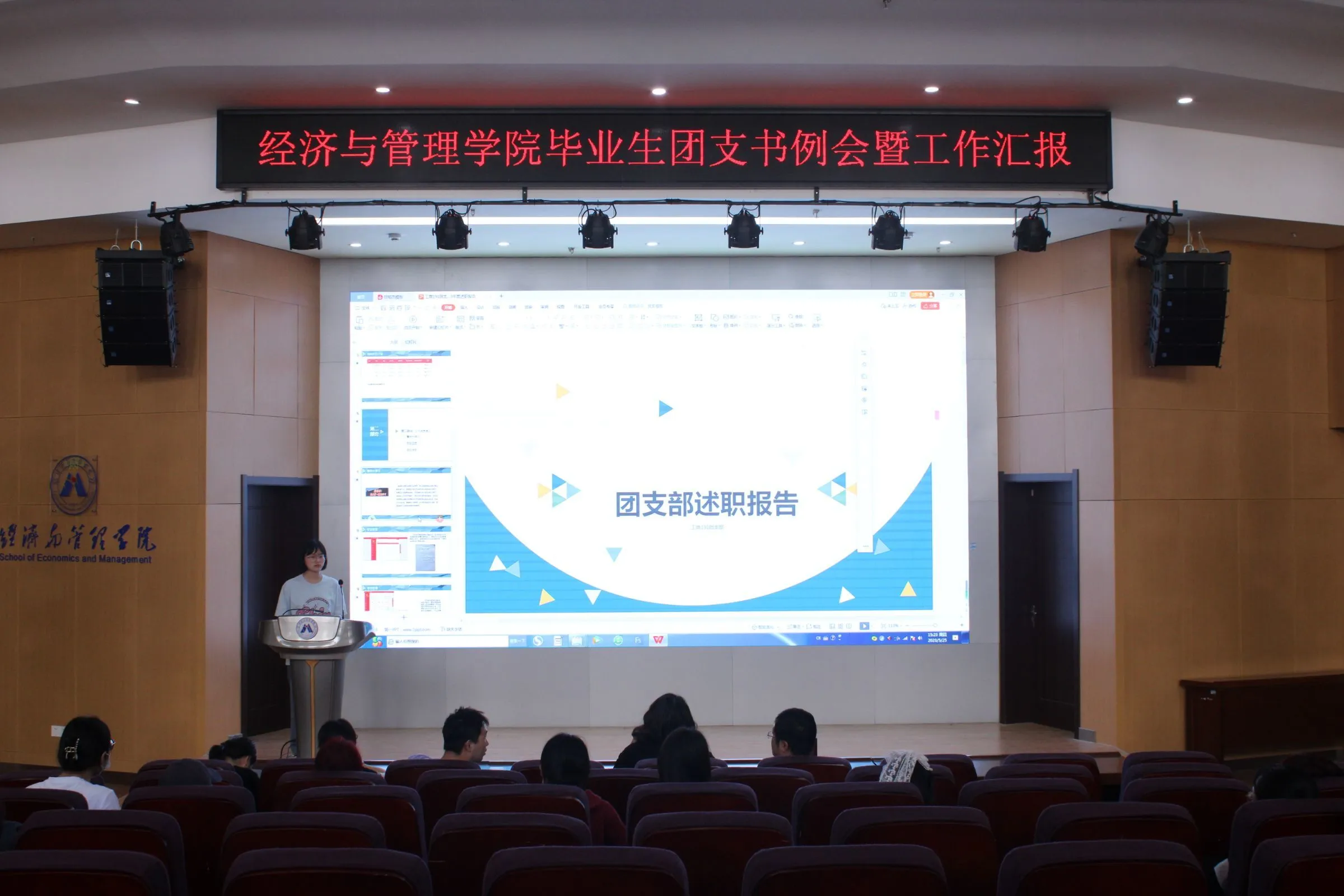 2019级工商管理、人力资源、市场营销、国际金融与贸易、物流管理、工业工程、质量管理专业以及管理研究生20级的团支书按照顺序依次上台汇报。各团支部主要围绕团支部组成、团支书工作成果展示、未来工作梳理、团支部工作不足与反思这几个方面展开,对大学四年团支部工作进行了全面的总结。汇报结束后,学院团委组织部负责人对团组织关系转接事务进行讲解,毕业生团组织关系转出等工作向各位毕业做出了明确要求。