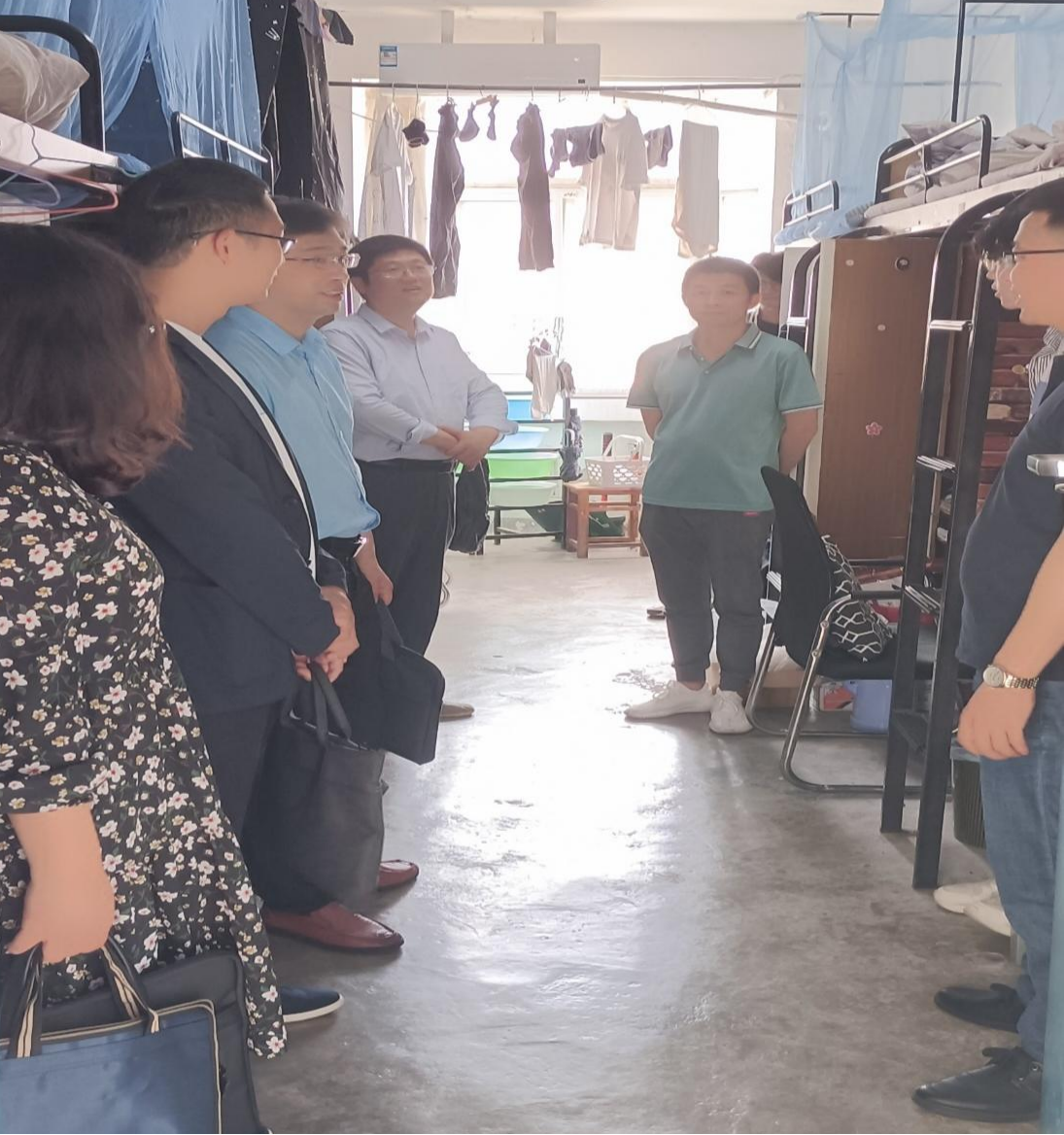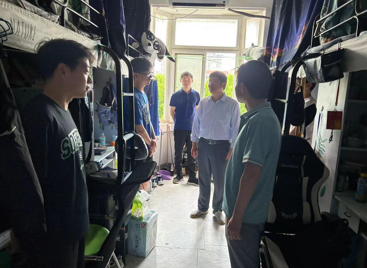 刘海涛、桂云苗等人一行先后来到男生22#和25#的毕业生宿舍,代表学院向毕业生致以问候和关怀,并亲切与学生们进行交谈,详细询问他们的升学、就业、离校手续办理等情况,全面了解毕业生就业去向和行程安排。学生们对学院领导和物流科学系教师党支部老师们的关怀和看完表示感激和欣喜,纷纷向老师们表达了对学院培养之恩和对母校的美好祝愿。