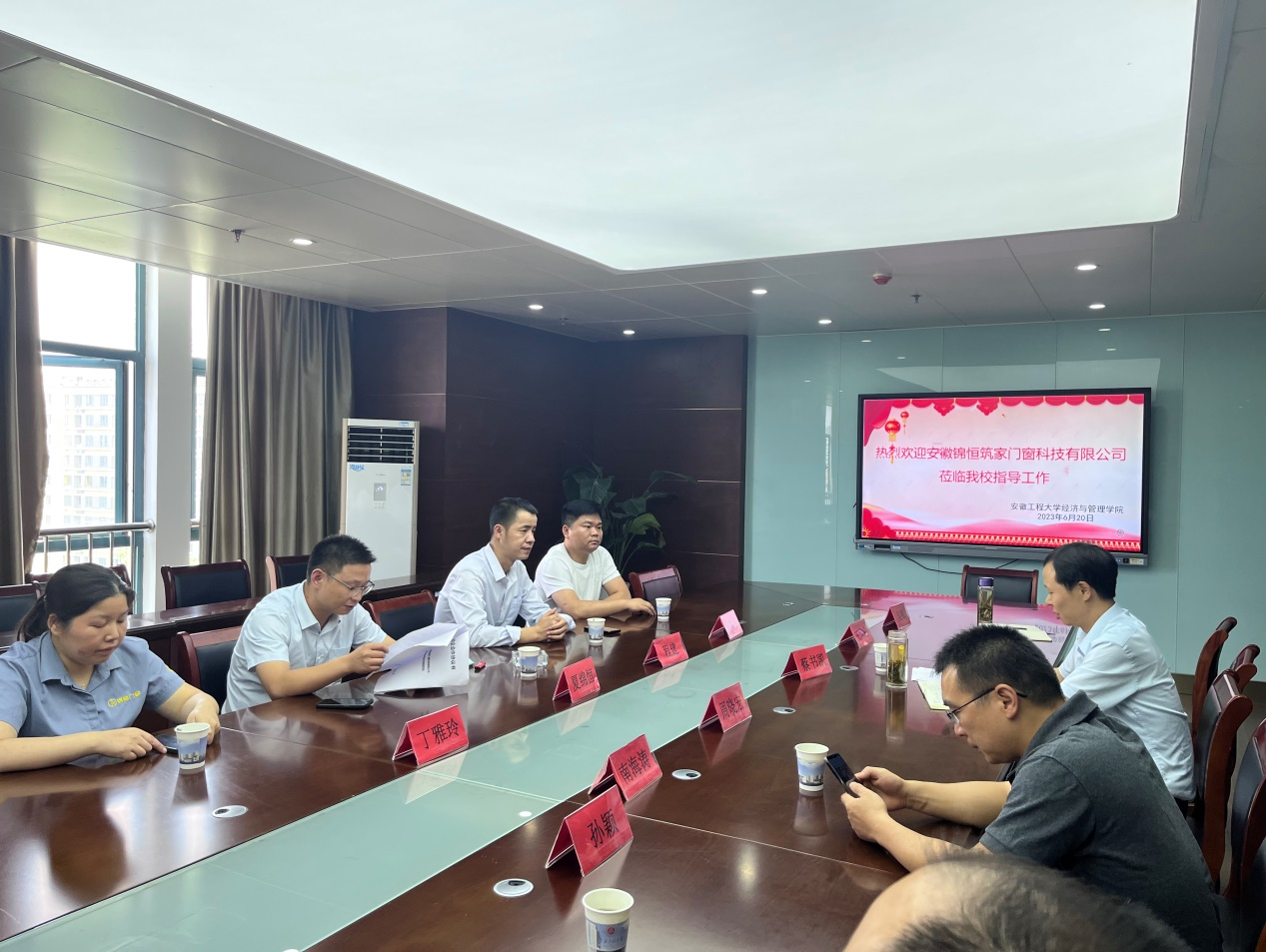 会议主要围绕产品设计、生产管理、市场营销和人力资源管理等方面展开了讨论。经济与管理学院的教师们分享了学院在相关领域的教学和研究成果,为锦恒筑家门窗科技有限公司提供了专业的指导和支持。双方共同探讨了如何提高产品设计水平、优化生产管理流程、拓展市场渠道以及合理配置人力资源等问题,并就合作方式和目标进行了深入的研究和探讨。