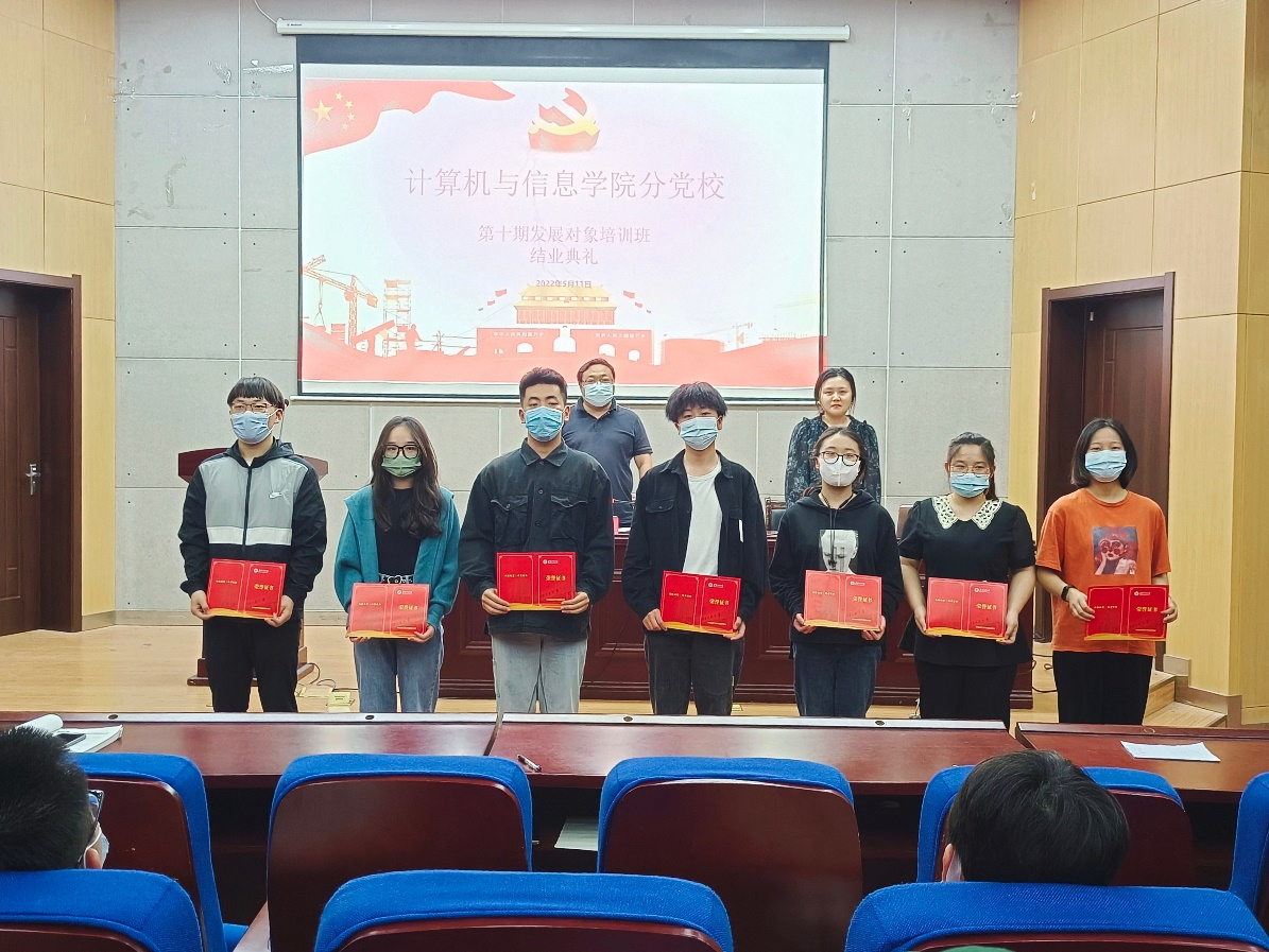5月12日,计算机与信息学院分党校举行第十期发展对象培训班结业典礼。学院党委书记李卫东、班主任王鸣鹃以及培训班学员参加,典礼由培训班班主任王鸣鹃主持。
