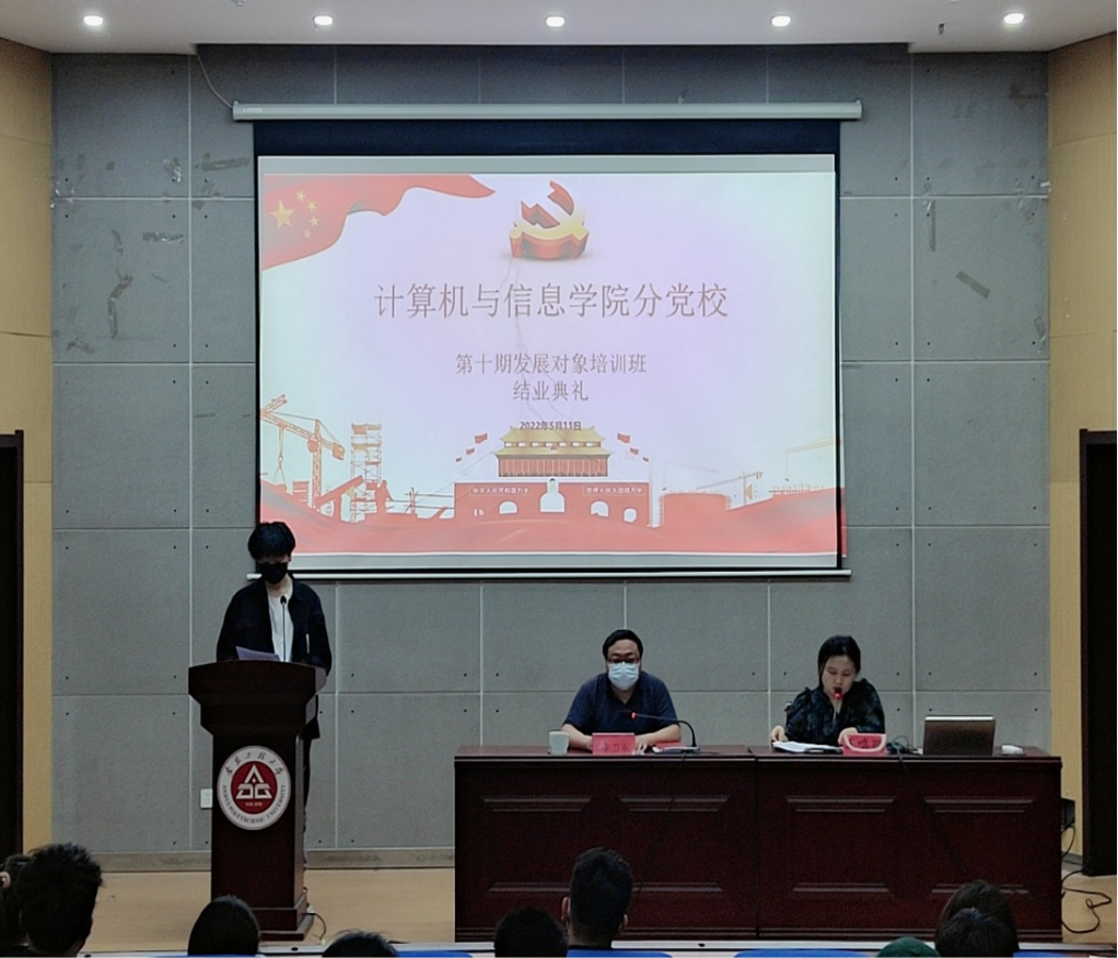 王鸣鹃宣读了计算机与信息学院分党校第十期发展对象培训班学员结业名单和优秀学员名单。李卫东和王鸣鹃为获得优秀学员颁发证书。