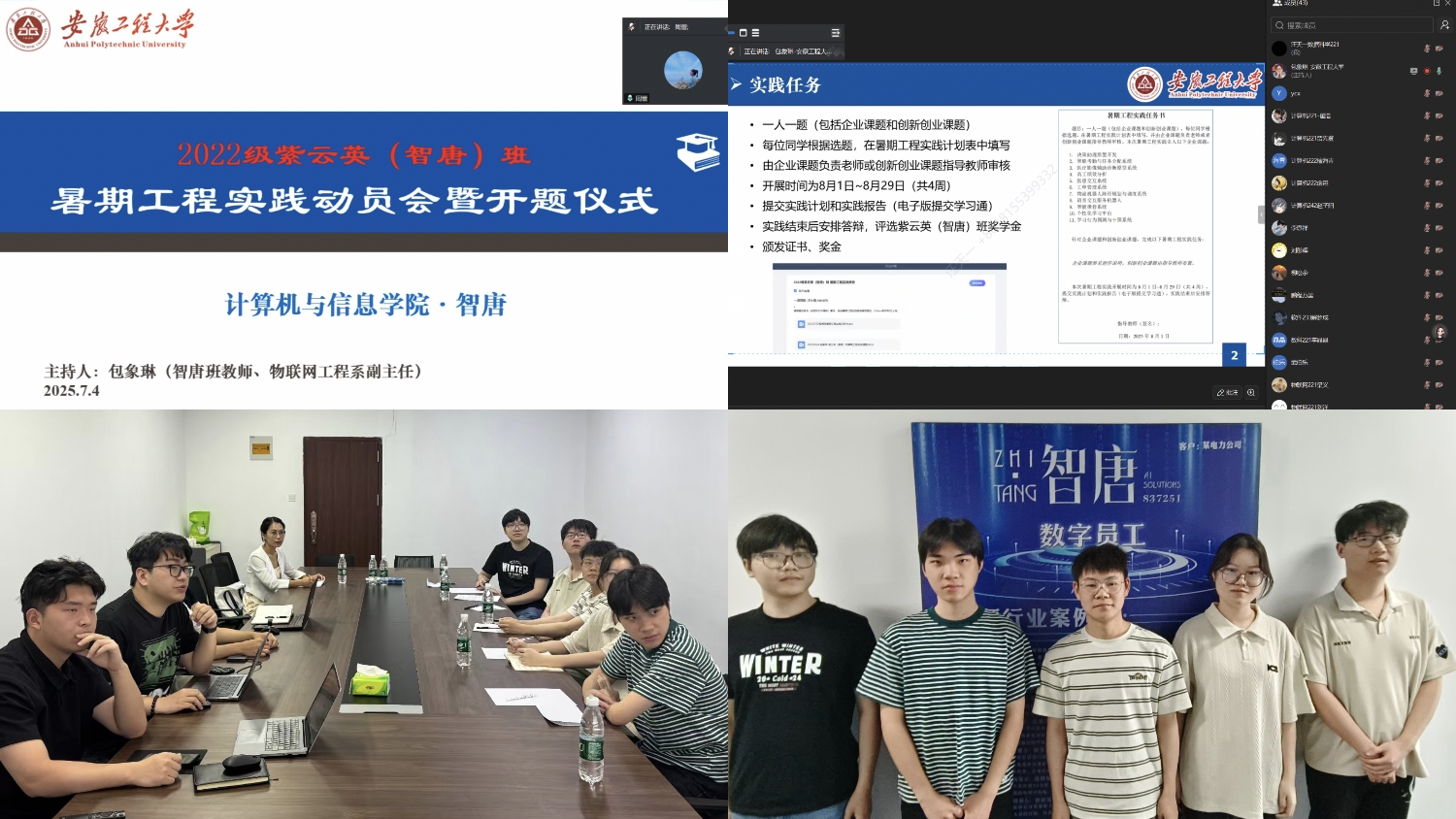 此次开题暨动员会的顺利召开,为2022级紫云英(智唐)班暑期工程实践筑牢基础,助力学生在产教融合的实践场中锤炼本领,实现专业成长与实践能力的双重提升。