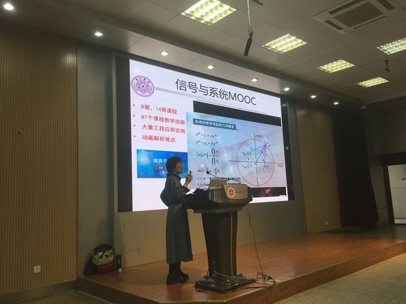 宫琴教授首先从MOOC的起源、建设发展现状及国家层面的政策支持进行了介绍,并结合自己MOOC建设的过程分享了自己的教学理念与经验。随后她对混合式教学与翻转课堂如何开展、混合式教学的重度与深度融合等常见模式进行了详细介绍。最后宫教授结合自己所授《信号与系统》课程就如何开展混合式教学与实践以及课程建设支撑环境等分享了自己的相关经验。