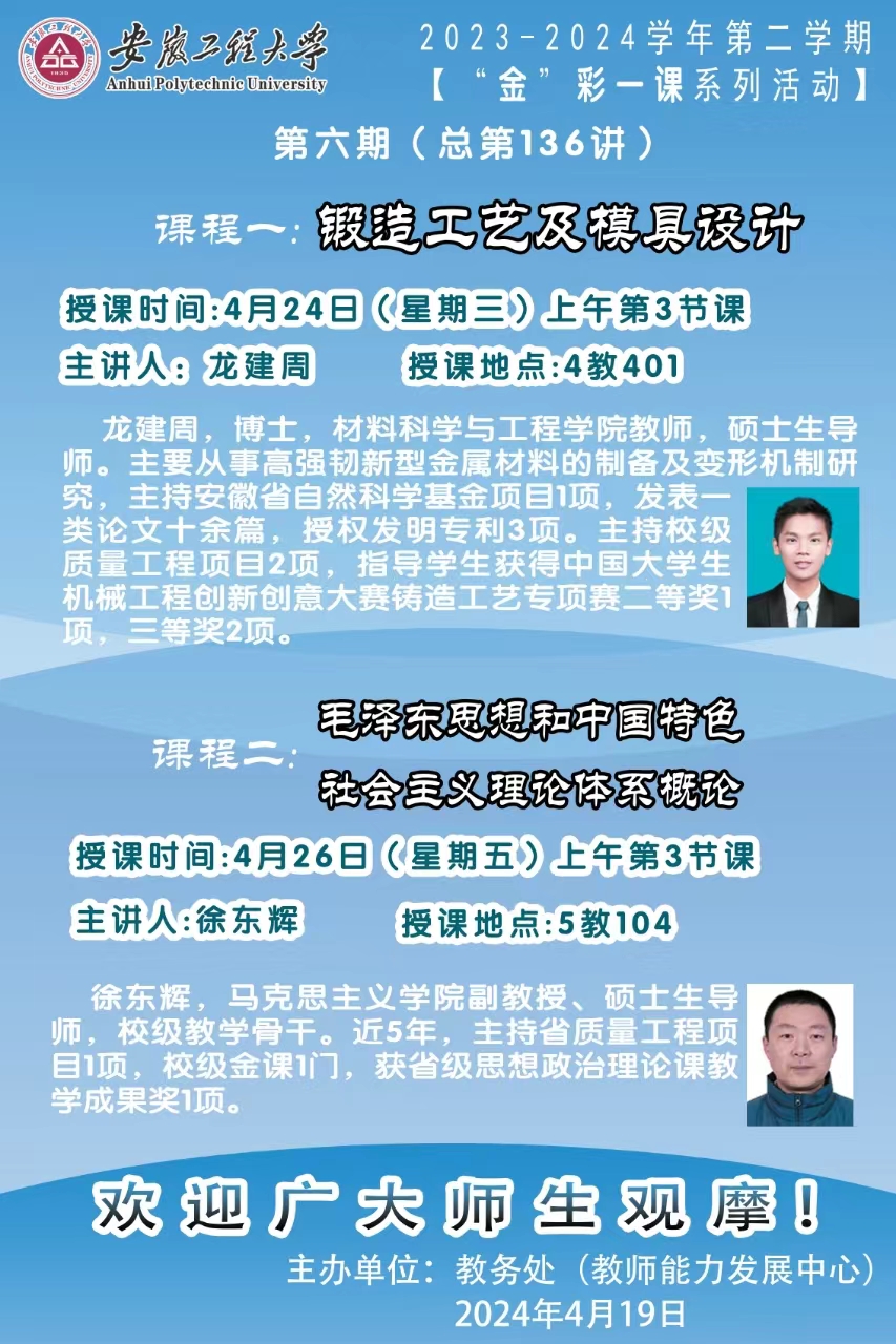 2023-2024学年第二学期【“金”彩一课系列活动】第六期预告(总第136讲)