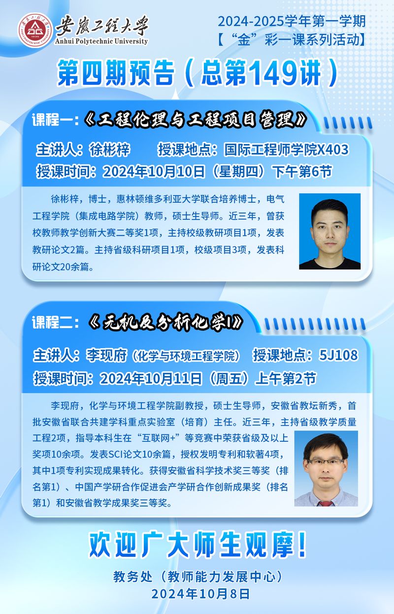 2024-2025学年第一学期【“金”彩一课系列活动】第四期预告(总第149讲)