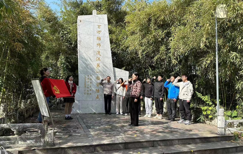 为深入学习党的二十大精神,培养党员的红色革命精神,10月29日,建筑工程学院师生共建党支部力学教学部教师党支部和建筑与研究生学生党支部以及“材料力学课程思政教学团队”骨干教师前往芜湖市繁昌区板子矶渡江战役第一船登陆点开展红色教育学习。