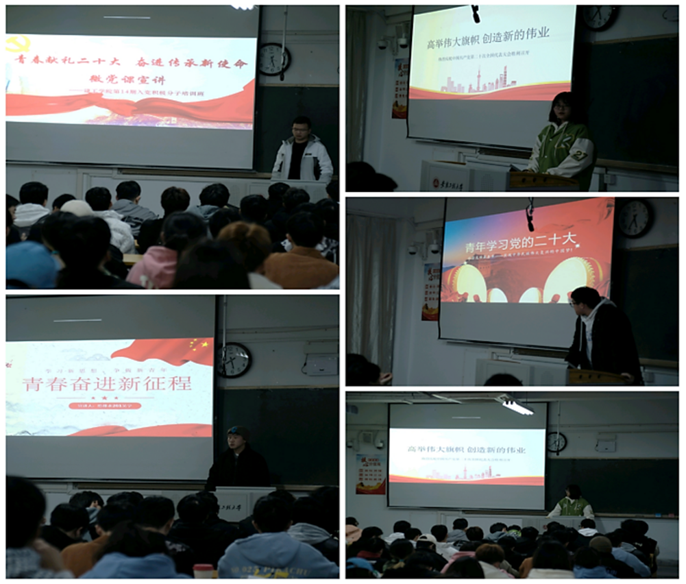 为深入学习宣传贯彻党的二十大精神,感悟思想伟力、汲取奋进力量,引导学生切实把思想、认识和行动统一到党的二十大精神上来,提升“三全六专”育人实效,提高入党积极分子思想政治素质,切实把好学生党员发展的“入口关”和“质量关”,近日,建筑工程学院分党校开展“青春献礼二十大 踔厉奋发向未来”系列活动。