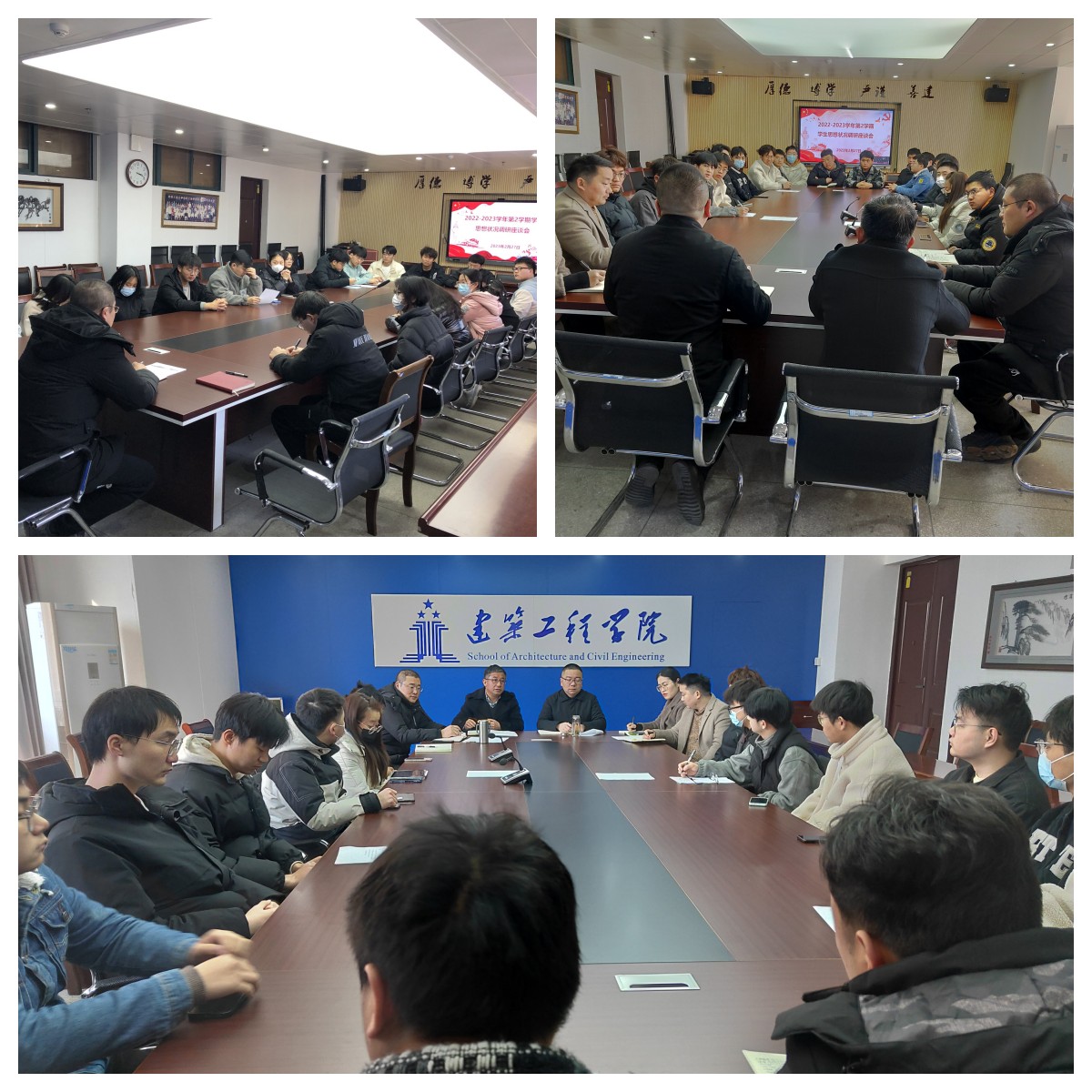 2月27日,建筑工程学院在C320会议室分毕业班班级和非毕业班班级两个专场召开新学期学生思想动态调研座谈会,学院党委书记李烨、院长曾磊、副书记张礼波,院团委负责人、全体辅导员,各年级、专业、班级学生代表参加会议。