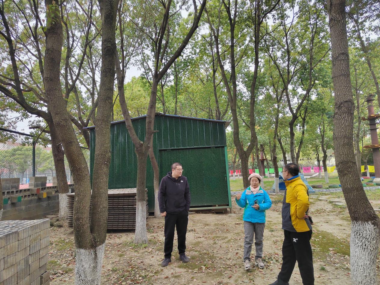 赵恒芳从项目实施周期与学生课程时间与大家进行沟通。王政、葛明罡就学生专业性的技能方面给出建议。讨论会后,建筑工程学院选派建筑学专业教师俞梦璇进行现场勘察,俞梦璇从树屋外观与功能性的角度与薛保红进行沟通交流,确定初步方案的实施区域,将结合建筑初步的专业课程开展“树屋”方案征集活动。