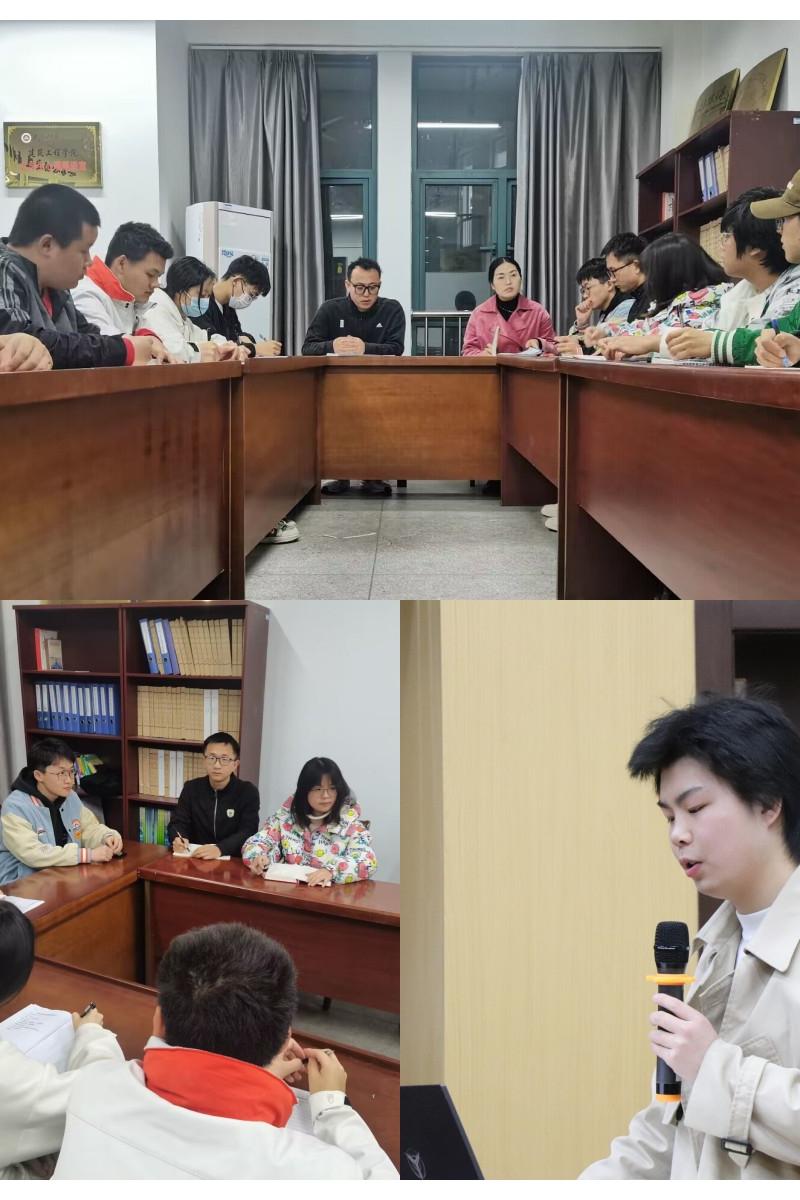 会上,苏伟刚带领全体人员集体学习了《共青团中央 全国学联关于增强新时代大学生社会实践活动实效深化共青团实践育人工作的意见》,要求学院社会实践活动以学校党委“三全六专”工作为指引,以劳动教育实践活动为载体,通过“三下乡”“返家乡”“团百花”志愿服务“青领计划”“青年红色筑梦之旅”“1+14”团建共建等实践育人工作落实落细。赵恒芳带领学习《中国共产党第二届中央委员会第二次全体会议公报》,要求各学生组织、班级团支部以主题班会、主题团日活动为载体,开展党的二十大精神宣讲工作,让理论知识宣讲进班级、进宿舍、进社区,以丰富多彩的学习形式,引领青年大学生坚定理想信念。储军豪带领学习《关于进一步做好“青年大学习”网上主题团课学习的通知》,要求各支部积极引导广大青年坚定拥护“两个确立”、坚决做到“两个维护”,让青年大学生更高质量地“正起来”。随后,土木18级校友黄涛同学结合自身大学期间的班级管理、学生工作、专业学习、兴趣爱好等方面进行了交流发言,希望22级同学们做好自己的大学生涯规划。
