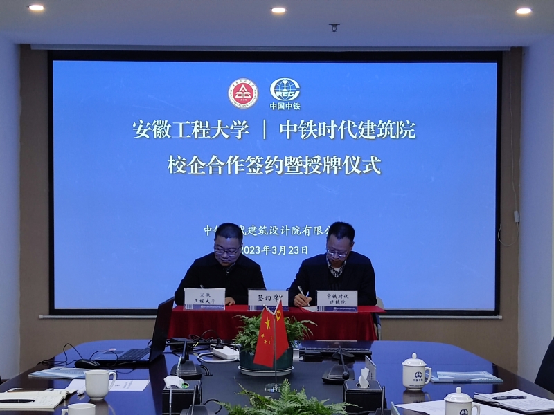 为了更好的推动建筑工程学院人才培养、科学研究和社会服务能力,3月23日下午,建筑工程学院党委书记李烨、院长曾磊带队赴中铁时代建筑设计院有限公司举行校企合作协议签约暨授牌仪式。中铁时代建筑设计院有限公司董事长张鹤、总经理周先祥、副总经理陈颖、科技质量部部长汪磊、副总工程师李胜国、建筑工程学院在设计院校友,建筑工程学院副院长张金轮、副院长曹兵、土木工程系主任韩有民出席仪式,会议由张鹤主持。