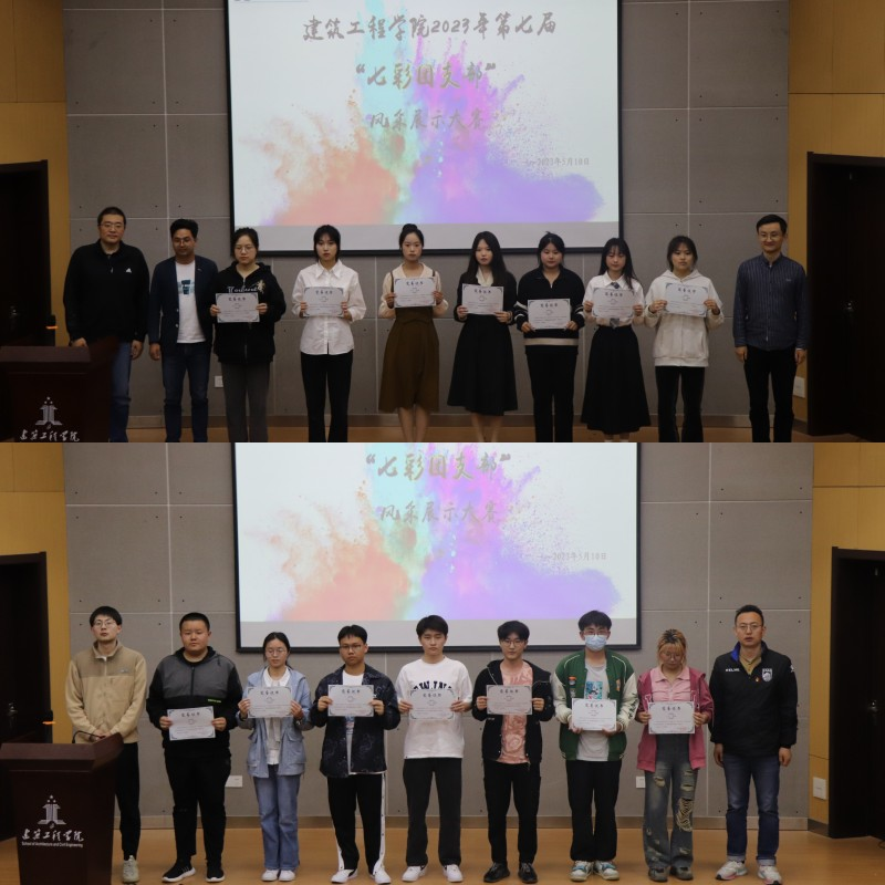 决赛终审答辩活动中国共青团团歌《 光荣啊,中国共青团》的恢弘曲调中拉开帷幕。各团支部通过精心制作的短片全面展示本支部的建设工作,以PPT演讲的形式介绍团支部如何发挥模范带头作用和目前取得的成绩。在思想引领方面,建筑222和给排水221班团支部以主题团日活动为契机,展示了学习习近平新时代中国特色社会主义思想尤其是习近平总书记关于青年工作的思想、党的二十大会议精神、青年大学习等方面的记录图片,并结合各团支部特点开展团员思想教育评议等活动,做好思想引领工作。在学风建设方面,建筑221班和工程212班团支部用短视频展示了同学们孜孜不倦,刻苦学习的精神,以及自入学以来取得的学习成果。在组织建设方面,土木212和工程222班团支部展示了班团一体化建设成果,围绕班级纪律、班干团队、班风班貌等进行建设,成效明显。在创新创业方面,工程211和给排水211班团支部成员展示了支部成员的创业认识和创业计划,大家积极参加各类创新创业实践活动,获得各类竞赛奖项。在志愿服务方面,给排水212和工程221团支部成员有强烈的志愿服务意识,大家利用课余时间积极参加“团百花”“丁香花”学雷锋等志愿服务行动,奉献自我、完善自我,实现自我在志愿活动中的人生价值。在社会实践方面,建筑212和土木214团支部积极引导组织成员参加各类社会实践活动,在做好个人保护的同时,加强团员的思想意识和实践创新能力,取得了一定的荣誉奖项。在新媒体建设中,土木211和土木221团支部展示了新媒体组织运营方式和作用发挥情况,在校内校外通过网络平台发布、开展、记录活动的形式展示了他们在新媒体工作的成效。经过两个多小时的激烈角逐,工程211班团支部、建筑221班团支部、给排水221班团支部、工程222班团支部、工程221班团支部、建筑212班团支部、土木211班团支部荣获第七届“七彩团支部”称号。