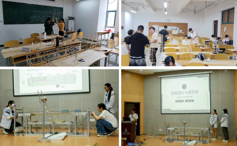 据悉,本次结构设计竞赛自4月11日开始报名,共吸引了29支团队报名参赛,每队三名队员。参赛成员分别来自土木工程、工程管理和建筑学等专业各年级的学生。学院对本次设计竞赛高度重视,从材料购置、制作场地、教师指导等方面全力支持学生们参与竞赛。5月23日邀请合肥工业大学王辉教授为学院师生进行结构设计竞赛的指导。本次结构设计竞赛分5月27日的初赛和6月3日的决赛两场进行模型加载测试,结合两场加载测试确定最终加载表现分(满分80分),评委根据模型理论方案、模型制作质量、现场陈述与答辩表现等评定设计和制作表现分(满分20分)。通过结构设计竞赛,提高了学生们的创新意识、实践能力和团队协作能力,学院将进一步加大学科竞赛支持力度,以赛促学,培养高素质应用型人才。