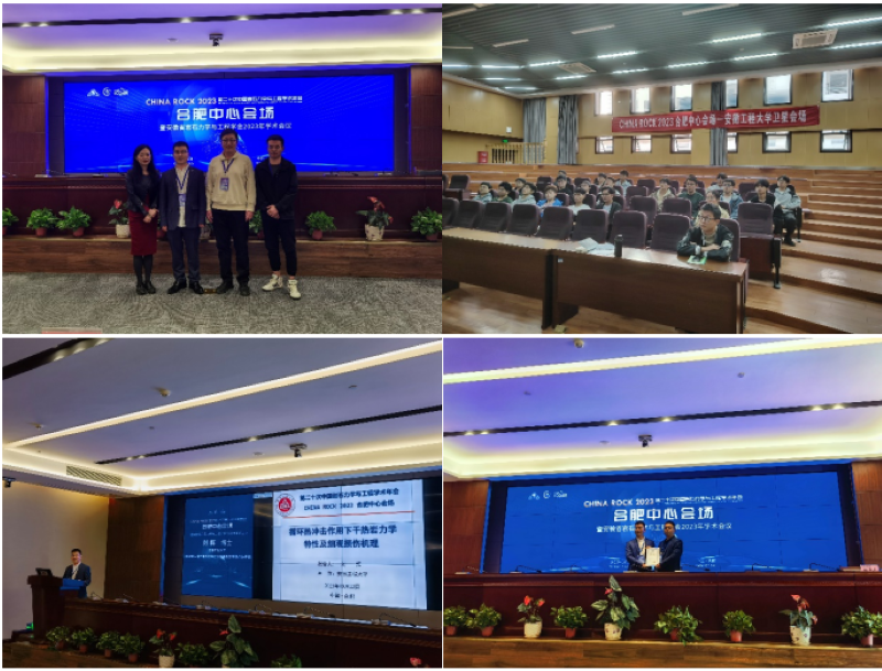 合肥中心会场则紧密结合安徽省岩石力学与工程的重要领域,围绕“矿山岩石力学与工程关键技术”这一主题组织开展了主旨报告、专题报告等,来自安徽省内各高校土木专业学者、相关领域企业技术负责人汇报了近期的研究与应用成果,其中,我院刘辉博士作了题为“循环热冲击作用下干热岩力学特性及细观损伤机理”的报告。