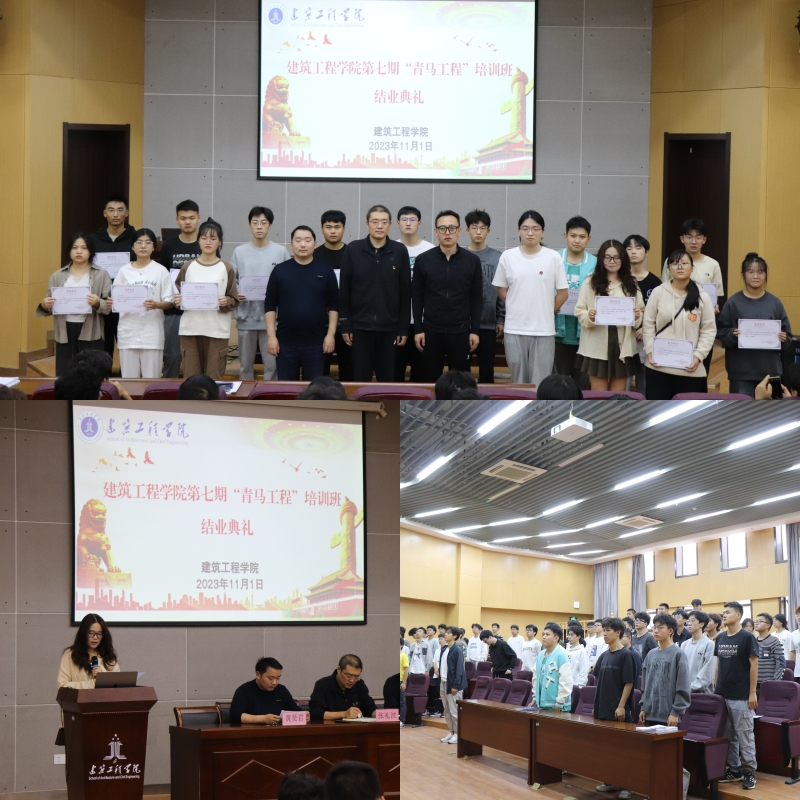 11月1日下午,建筑工程学院在C座实验楼3楼报告厅举行第七期“青马工程”培训班结业典礼,院党委副书记张礼波、院团委负责人、团委委员、辅导员及全体学员参加毕业典礼。典礼由本期培训班班主任苏伟刚主持。