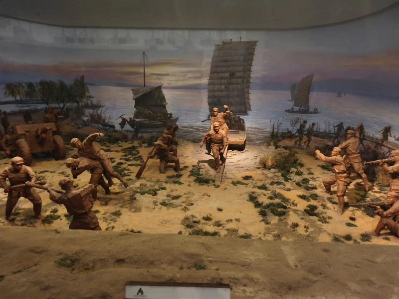 长江南岸,百姓也在翘首以盼——渡江战役前,江南繁昌青年农民王刚友等避开严密封锁,渡过长江投奔解放军,介绍江南敌情动态、地理环境。渡江时,王刚友作为突击队向导登上木帆船,上岸后领着突击队搜索敌人的每一座明碉暗堡。
