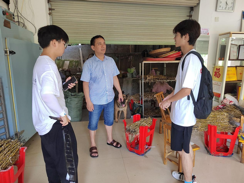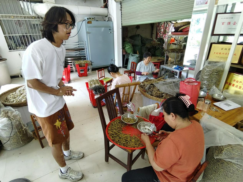 团队成员们向工人了解到,石斛采摘后主要经晾晒,翻炒,固形,剪切这几道主要工艺而成,每道工序都不可或缺。工人们有条不紊的进行着,熟练掌握每一道工序技术。通过此次企业调研,队员们深刻理解了“靠山吃山,靠水吃水”这句话。霍山县太阳村的村民们发展地方特色石斛产业,找到了适合于自身的发展方向,解决了太阳村村民留村就业问题,实现了产业发展与农民增收的双赢,这也是他们走向致富路的关键。