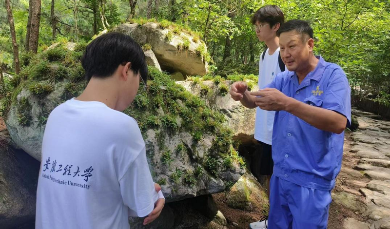 (图2 工作人员讲解霍山米斛)