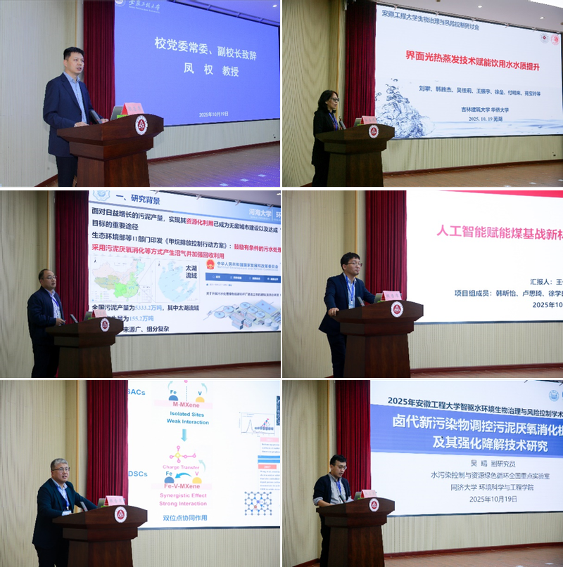 2025年10月19日,“2025智驱水环境生物治理与风险控制学术研讨会”在我校召开。校党委常委、副校长凤权教授,吉林建筑大学苑宝玲教授,河海大学罗景阳教授,合肥工业大学王伟教授,安徽工业大学丁磊教授,同济大学副研究员吴瑒等嘉宾出席开幕式。开幕式由建筑工程学院院长曾磊教授主持,学校科技处副处长沈豫浙参与研讨。