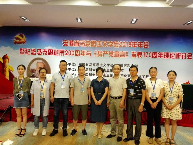 2018年7月13—15日,“安徽省马克思主义学会2018年年会暨纪念马克思诞辰200周年与《共产党宣言》发表170周年理论研讨会”在合肥举行。校党委副书记苏国红教授、马克思主义学院院长李卫华教授、马克思主义理论教研室虞满华教授和毛加兴副教授带领2016和2017级研究生葛清清、许磊、吴芳芳、王来凤、郝松5位研究生与会。