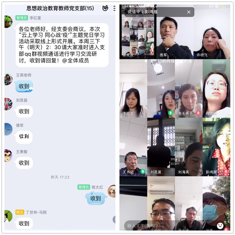 思想政治教育教师党支部开展“云上学习,同心战‘疫’”主题党日活动