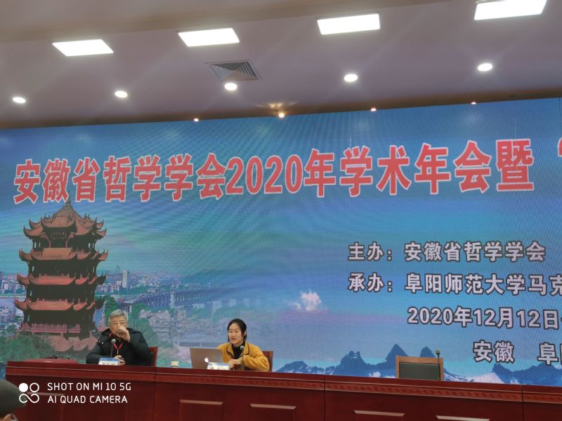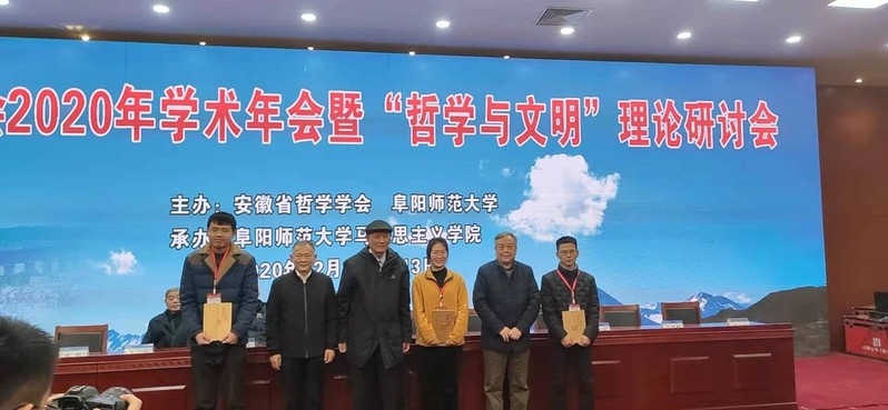 12月12日至13日,安徽省哲学学会2020年学术年会暨“哲学与文明”理论研讨会在阜阳师范大学体育中心召开。本次会议由安徽省哲学学会以及阜阳师范大学主办,以“哲学与文明”为主题。参会人员有安徽省社科联党组书记常务副主席洪永平、安徽省哲学学会会长朱士群、安徽师范大学教授陶富源、合肥工业大学教授钟玉海等众多省内知名专家以及近百名相关高校教师、学生。我院刘聪教授、毛加兴副教授以及2019级马克思主义基本原理专业研究生欧亚琴向大会提交了论文并入选会议论文集,应邀参会。与会其间,欧亚琴在大会发言中做了《马克思主义中国化历史性飞跃的要素考察与特征分析—兼论新飞跃的逻辑必然》的主题发言,并荣获优秀论文一等奖。
