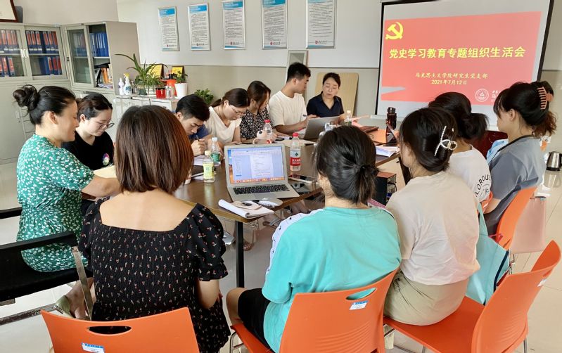 7月12日上午,马克思主义学院研究生党支部在T1501召开党史学习教育专题组织生活会,支部书记裴利萍主持会议,学院党总支副书记、院长吴月红到会指导。