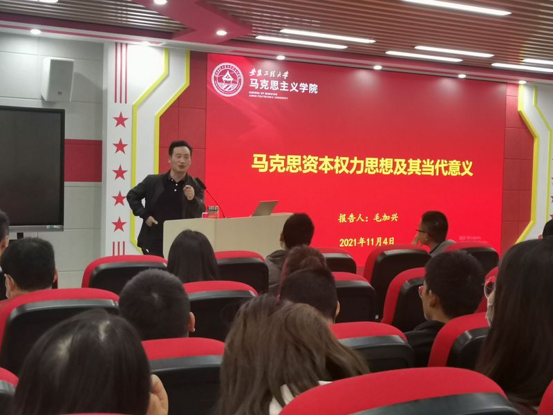 11月4日下午,马克思主义学院博士•教授论坛邀请毛加兴老师在VR实践教学中心(1410室)举办“马克思资本权力思想及其当代意义”专题学术讲座。讲座由巫爽博士主持,马克思主义学院部分教师及全体研究生参加本次讲座。