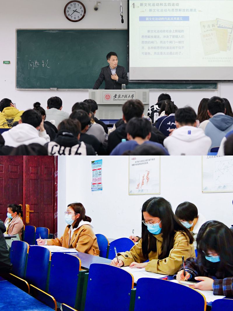 本次教学示范课由学院教学副院长、校级教学名师刘德军教授讲授,讲授内容为《中国近现代史纲要》课程第四章第一节“新文化运动与五四运动”。45分钟的教学中,刘德军教学设计合理、重难点突出、内容详略得当、语言幽默风趣、教态自然大方,充分展现了一位优秀思政课教师的教学风采。面对枯燥乏味的知识点,他或引入丰富史料、或选取历史人物事迹辅助教学,帮助学生对理论知识的掌握与理解;他还非常注意通过问题启发学生思考,拓展学生的思维,激发学生的学习兴趣。整个教学过程中,他精神饱满、深入浅出、松弛有度,教学内容娓娓道来;学生也积极参与,课堂气氛活跃,效果良好。