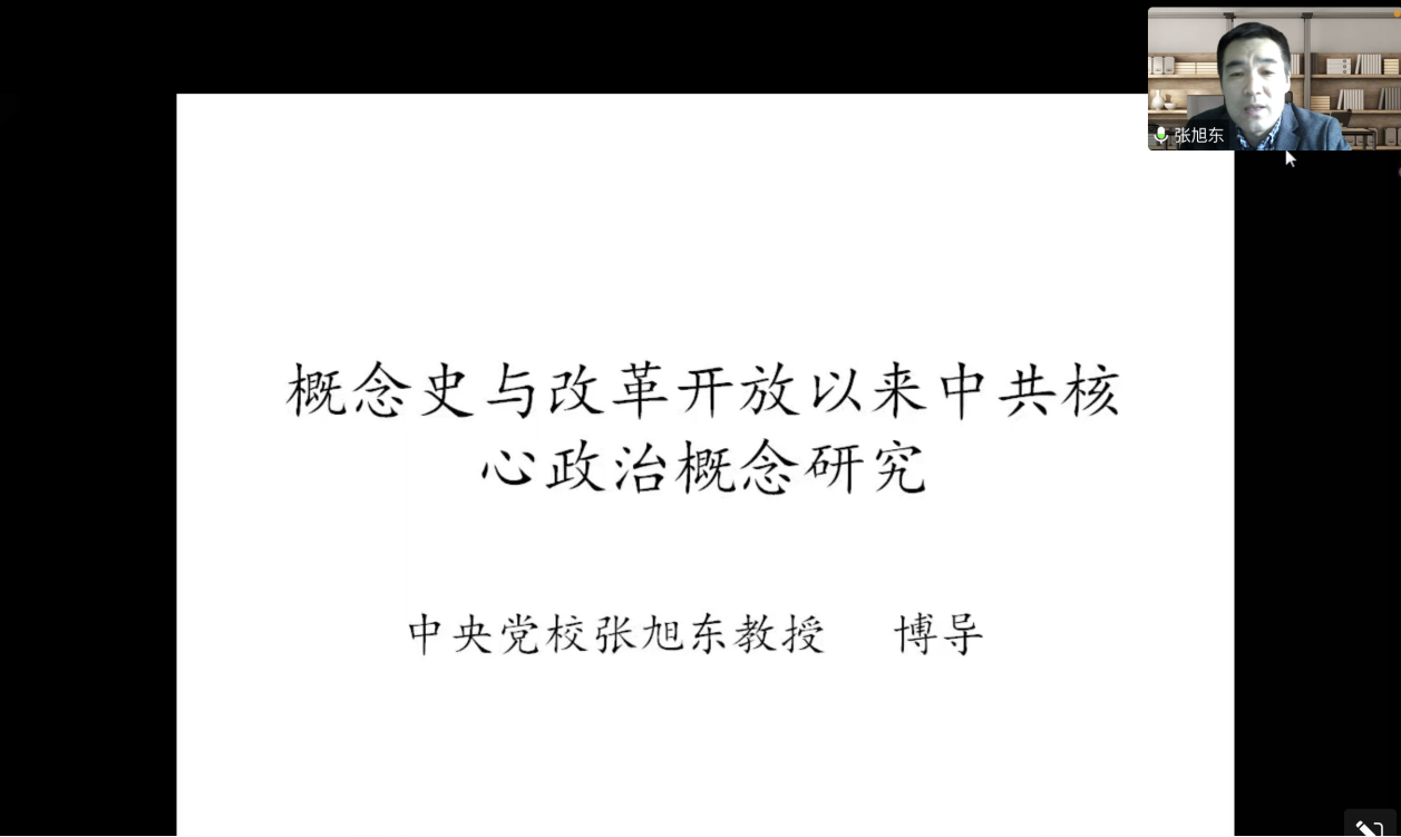 5月12日下午,中共中央党校(国家行政学院)张旭东教授受邀为马克思主义学院全体专兼职思政课教师和研究生,作题为“概念史与改革开放以来中共核心政治概念研究”的专题报告。本场报告会是今年马克思主义学院学术活动月的第五场学术报告,报告采用腾讯会议形式。马克思主义学院李海涛院长主持本次报告。