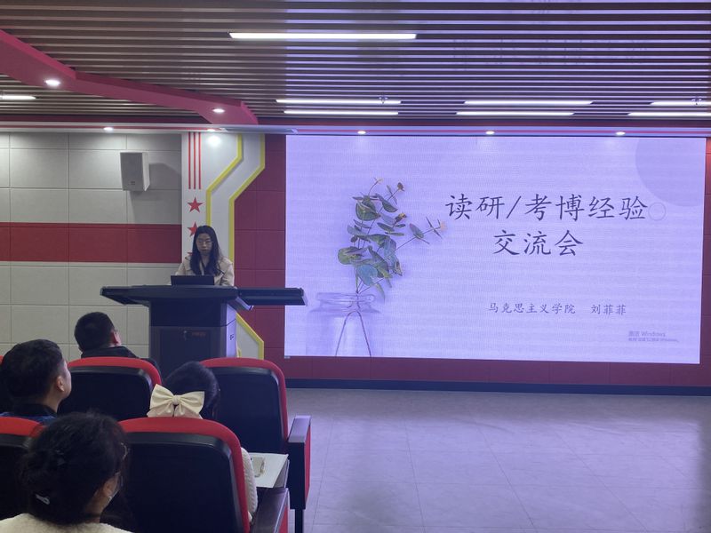 刘菲菲老师是第一位博士毕业后回学院工作的我院硕士毕业生。她结合自己的读研和考博经历,与同学们作了精彩的分享。她给计划考博的同学们几点建议:首先要自信,在自信的基础上努力积累专业知识;其次要合理安排学习时间,做到劳逸结合;最后要认清自己,做好规划,就业还是读博,不能盲从,适合自己的才是最好的。