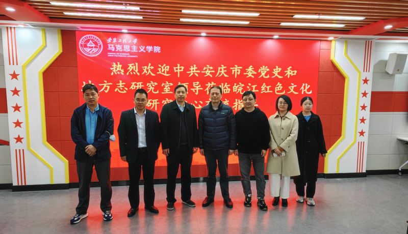 4月25日,中共安庆市委史志室副主任胡国正一行来校调研我校皖江红色文化研究中心,中共芜湖市委史志室副主任龙遗华陪同调研。