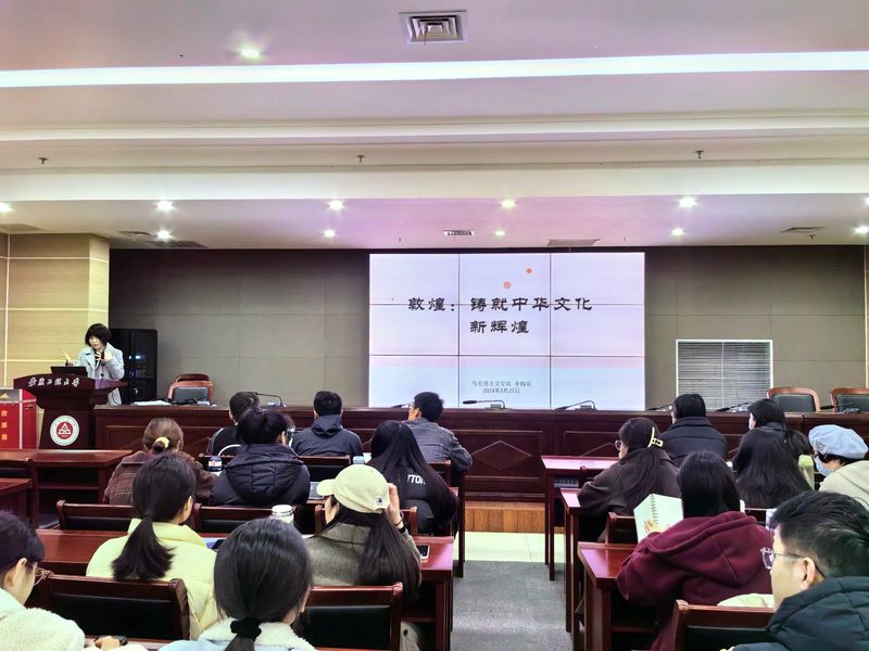 3月27日下午,马克思主义学院研究生党支部在图书综合楼202会议室开展讲党课活动。本次活动邀请我院李梅景博士主讲“敦煌:铸就中华文化新辉煌”。活动由支部书记裴利萍主持,支部全体党员和入党积极分子参加。