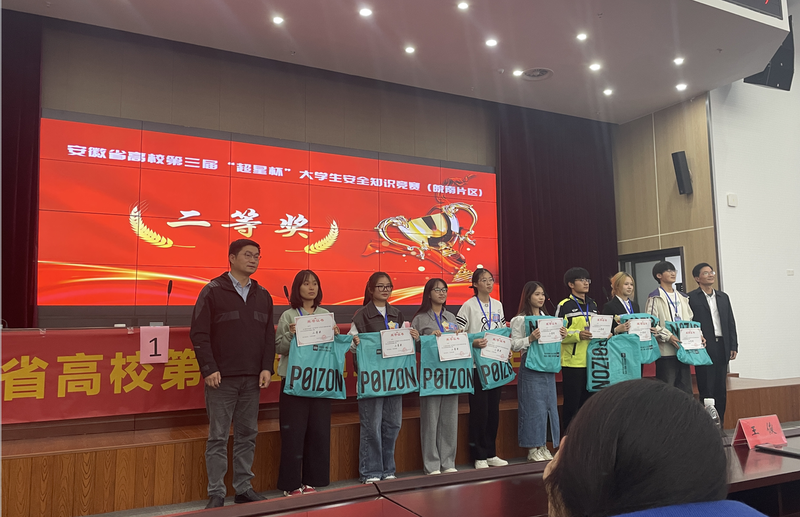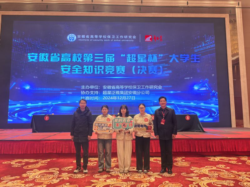 1227日,安徽省高校第三届“超星杯”大学生安全知识竞赛(决赛)在安徽省蚌埠市举行,我院研究生组队代表学校参赛,成功斩获了一等奖。