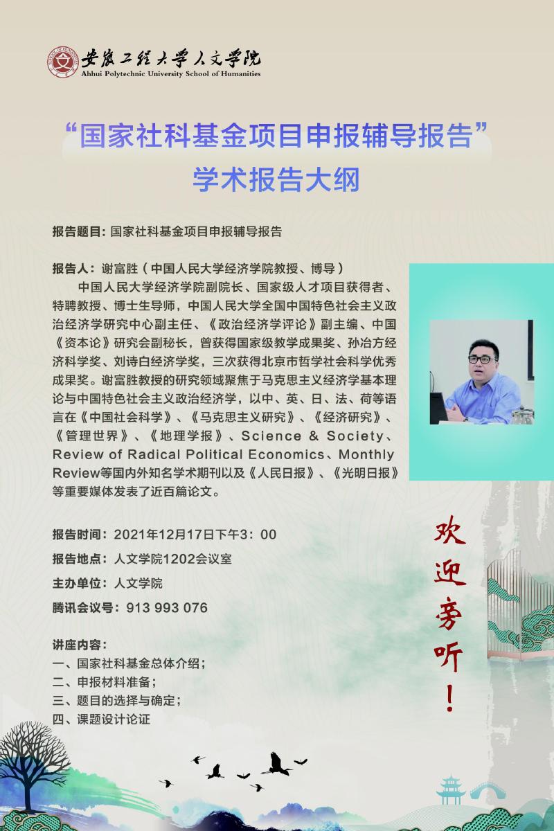 学术报告预告:“国家社科基金项目申报辅导报告”