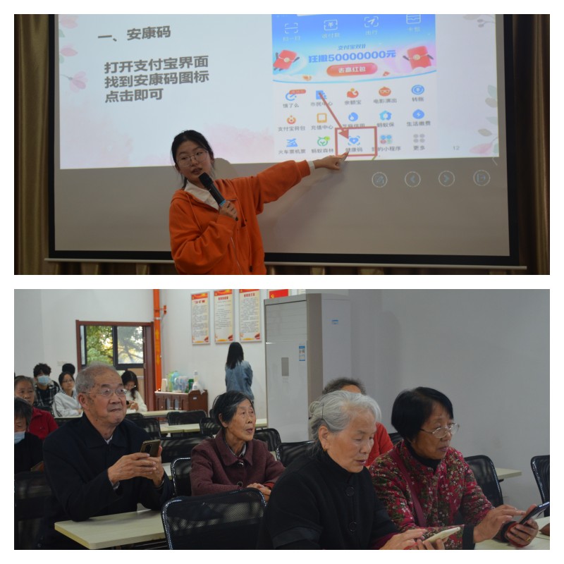 此次活动由法学212刘凡志愿者主要讲解,她耐心讲解了智能手机的使用方法,包括手机基础开关键、储存联系人、微信与支付宝使用、安康码等等,面面俱到。离退休教师们时不时点头认可。宣讲结束后,志愿者在现场“一对一”进行耐心的演示为老师们答疑解惑。会议室里传来大家的欢声笑语,笑容洋溢在每一个人的脸上。
